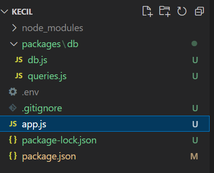 For the sake of organizing our codes, lets create a new folder called packages and inside it, create a new folder called db where we can add our databasehandler in a file called db.js