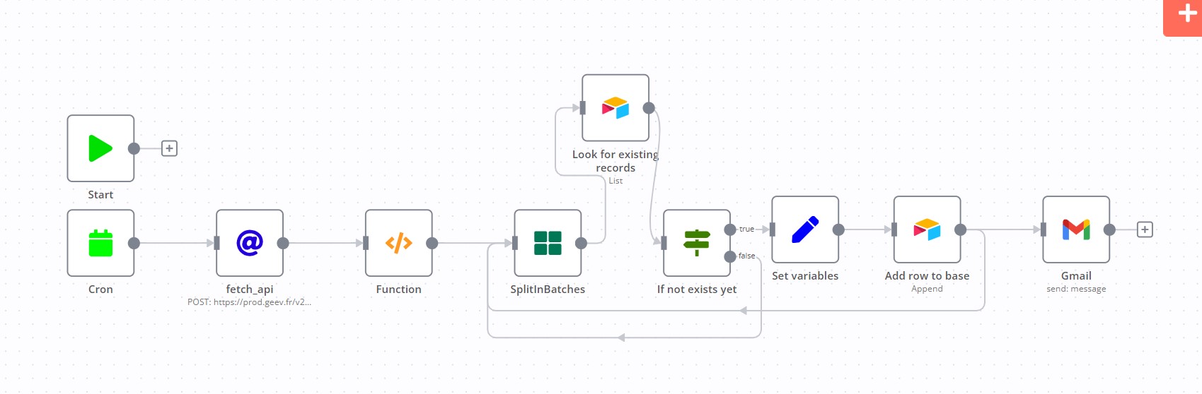 Now that we have our API connector ready, we just need to set up a workflow that runs daily or how ever often you want it to be to add a new entry in airtable everytime a new item is detected.