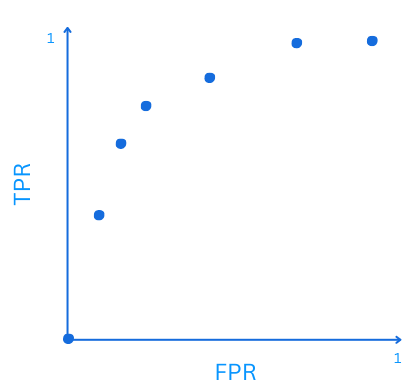 - ROC Curve plots FPR and TPR based on different probability threshold