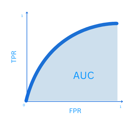 Now that we understand how the ROC Curve is created, it is important to understand how we can compare one ROC Curve to the other since it is equivalent to comparing 2 models and to decide which model works better. The notion that we need to keep in mind is that we want a model with the lowest FPR and the highest TPR. This means, it is equivalent to saying we want the area under the ROC curve to be as close as possible to 1. This area under the curve are also known to be AUC
